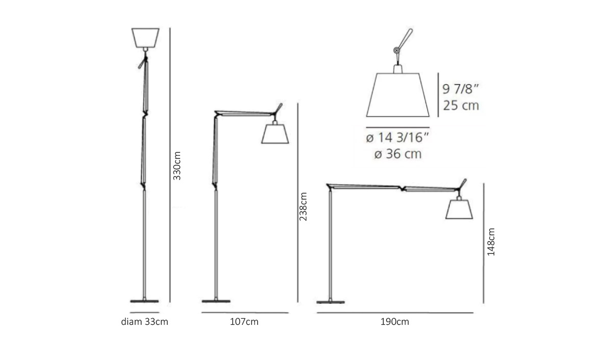 BRUTO HUURPRIJS per articulerende lamp TOLOMEO MT 36 voor 1 week: 120,00€ ex BTW